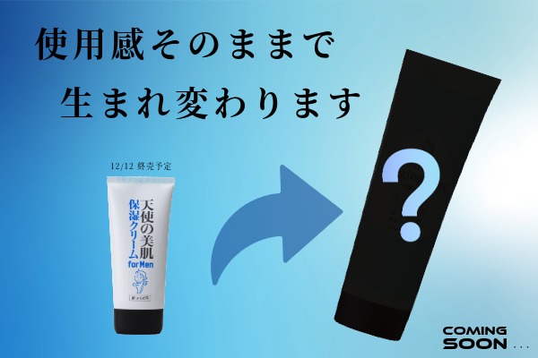 「天使の美肌保湿クリームforMEN」、近々、さらにパワーアップした新しい仲間として登場予定なんです!